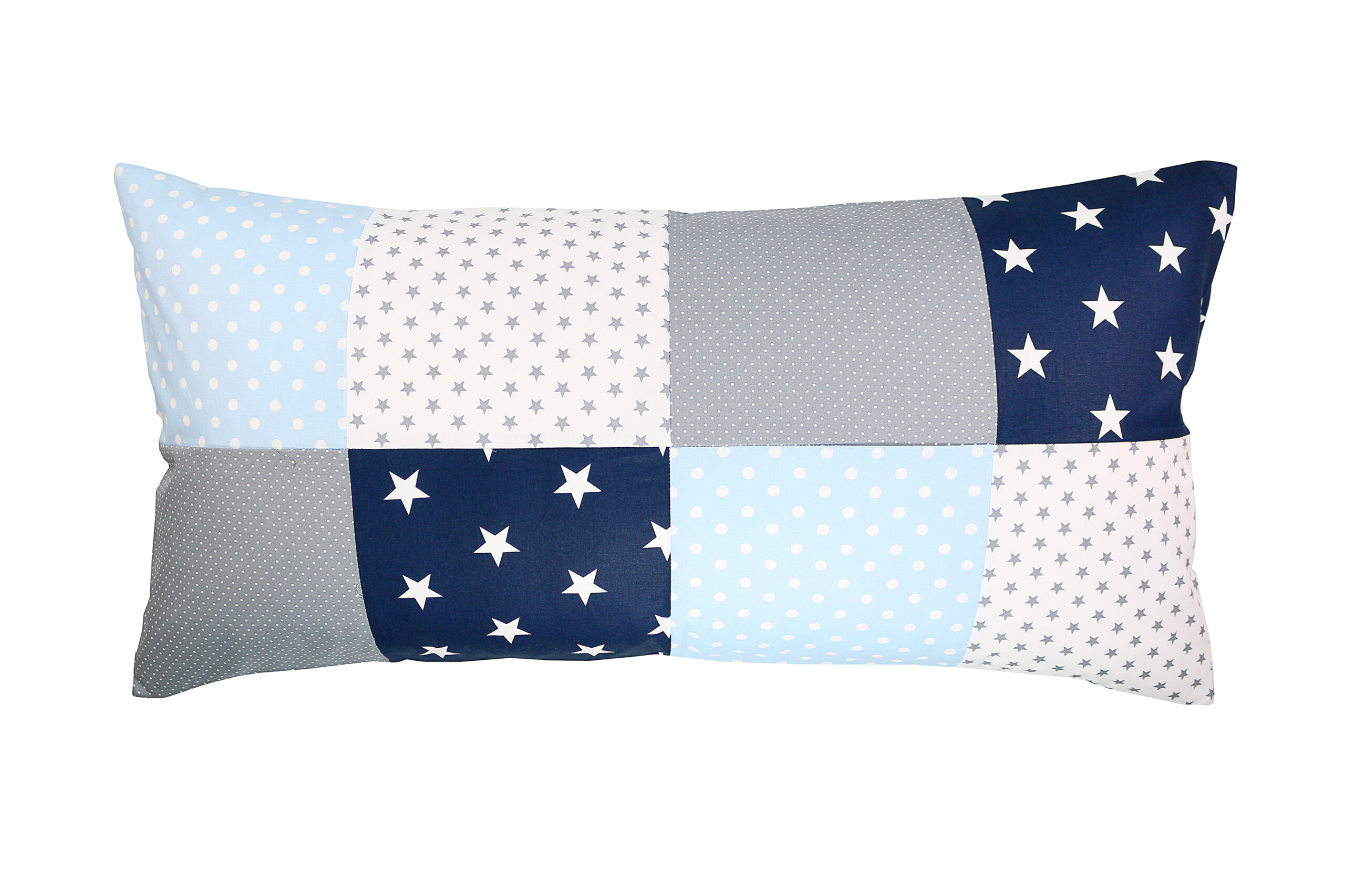 ÃKO & FAIR Kissenbezug mit Patchwork aus 100% Baumwolle von ULLENBOOM ® Kissenhülle Zierkissen Dekokissen für Zuhause, 40×80 cm, Blau Hellblau Grau