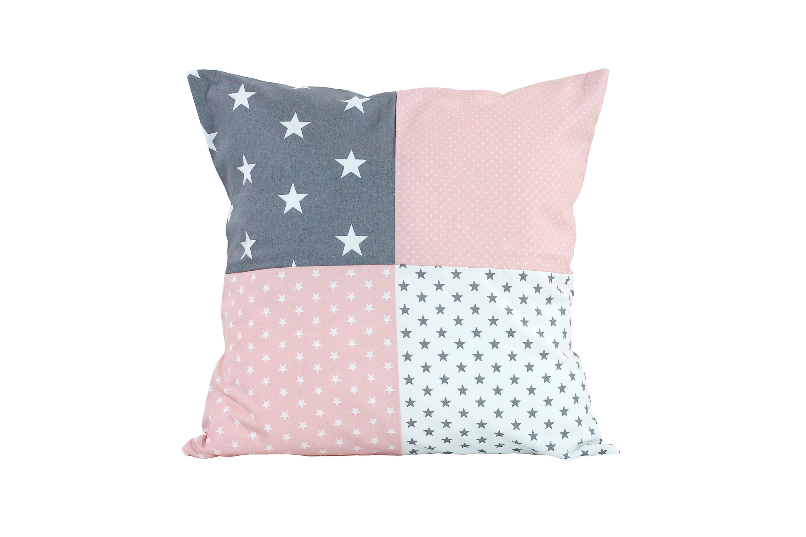 ULLENBOOM® Baby & Kinder Kissen 40×40 cm – Patchwork, Rosa Grau – Bezug und Inlett – Dekokissen, Kuschelkissen, Zierkissen