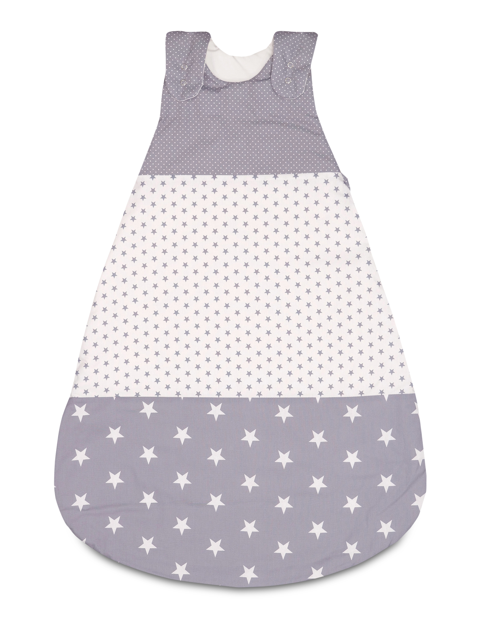 ULLENBOOM® Baby Schlafsack, 3 verschieden GröÃen – Patchwork, Graue Sterne – Für Frühling, Herbst und Winter, TOG-Wert 2,5 – Ãko & Fair