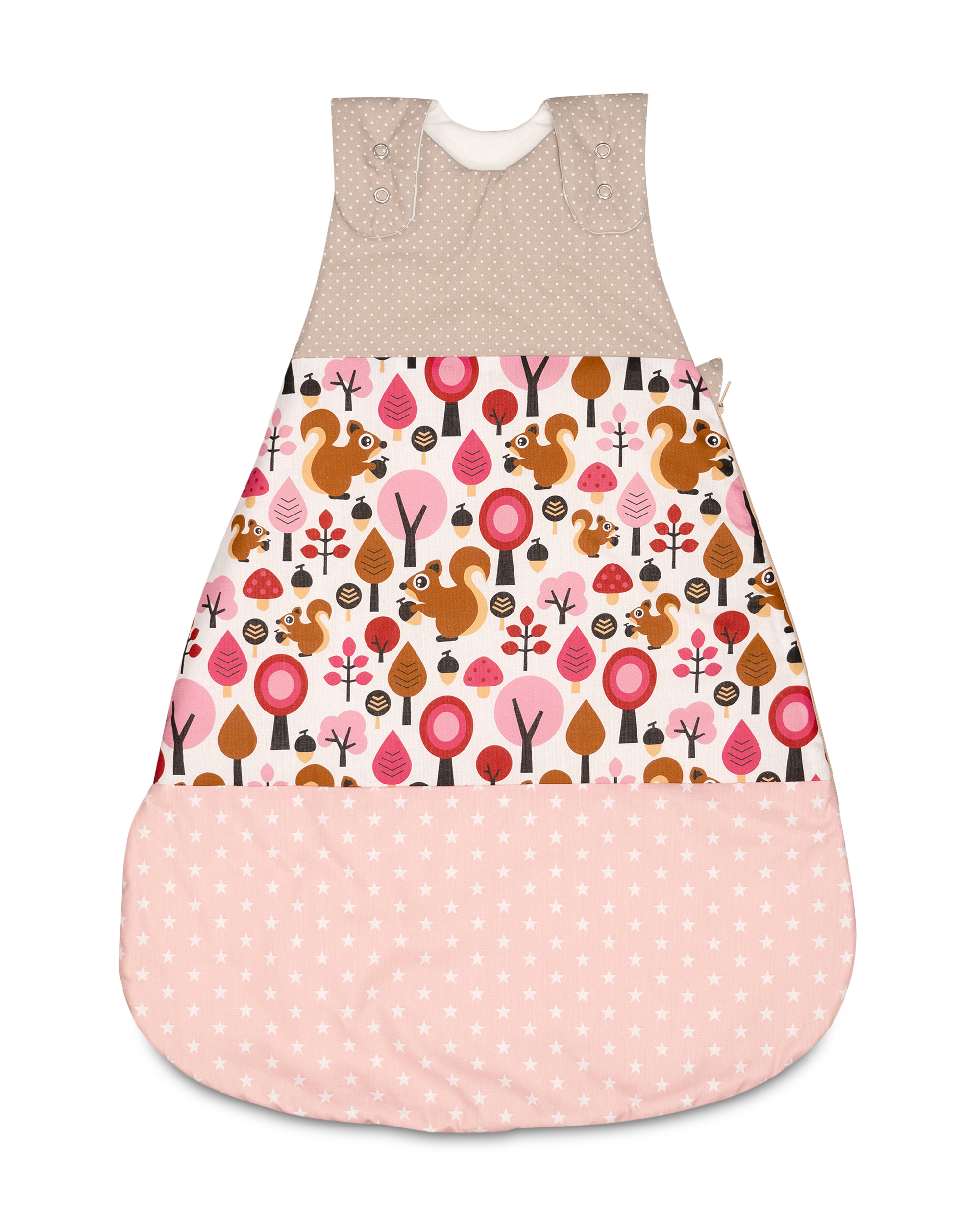 ULLENBOOM® Baby Schlafsack, 3 verschieden GröÃen – Patchwork, Sand Eichhörnchen – Für Frühling, Herbst und Winter, TOG-Wert 2,5 – Ãko & Fair