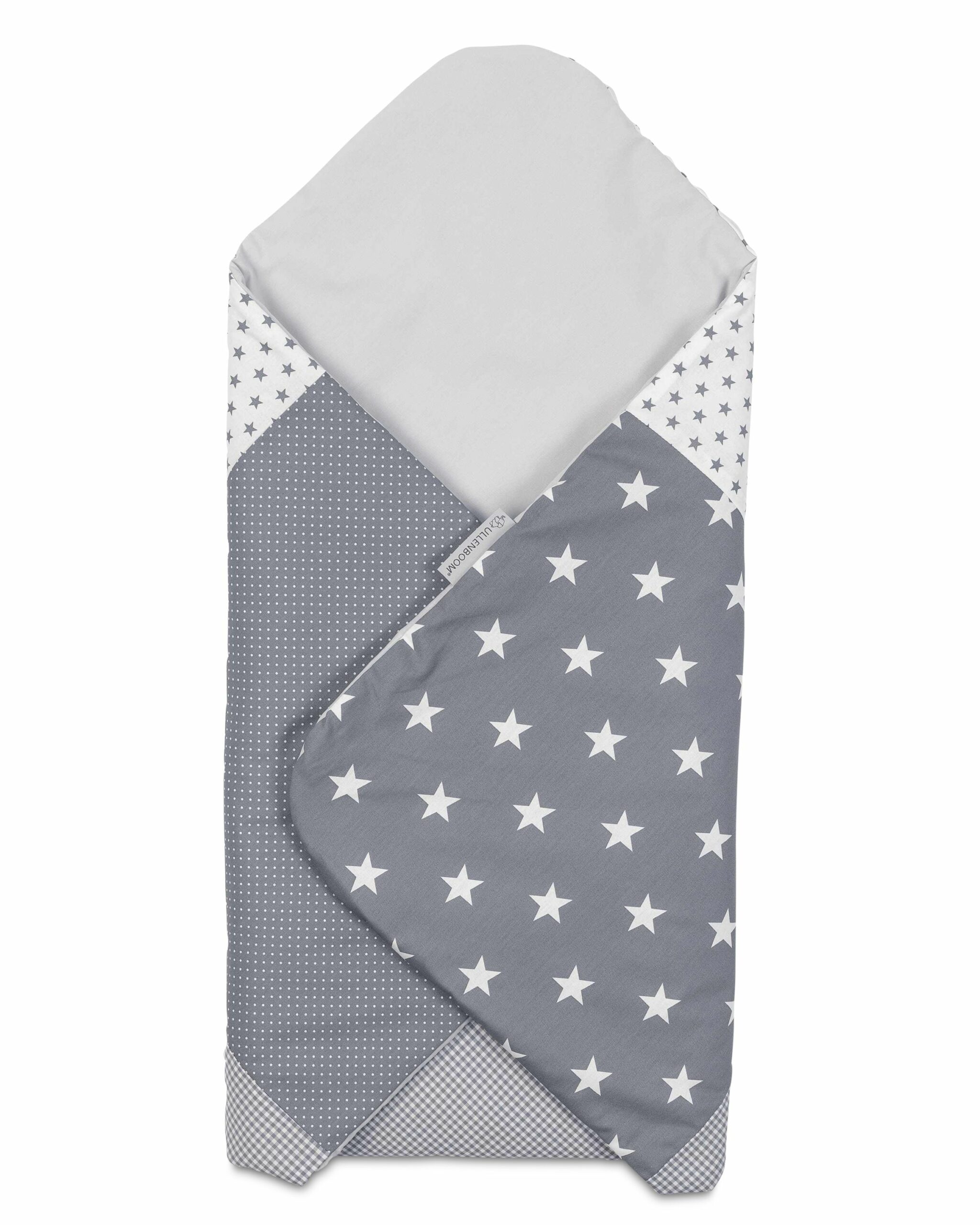 ULLENBOOM® Babyhörnchen – Graue Sterne – Auch als Puckdecke, Wickeldecke oder Einschlagdecke für Babys geeignet – Aus zertifizierten Materialien