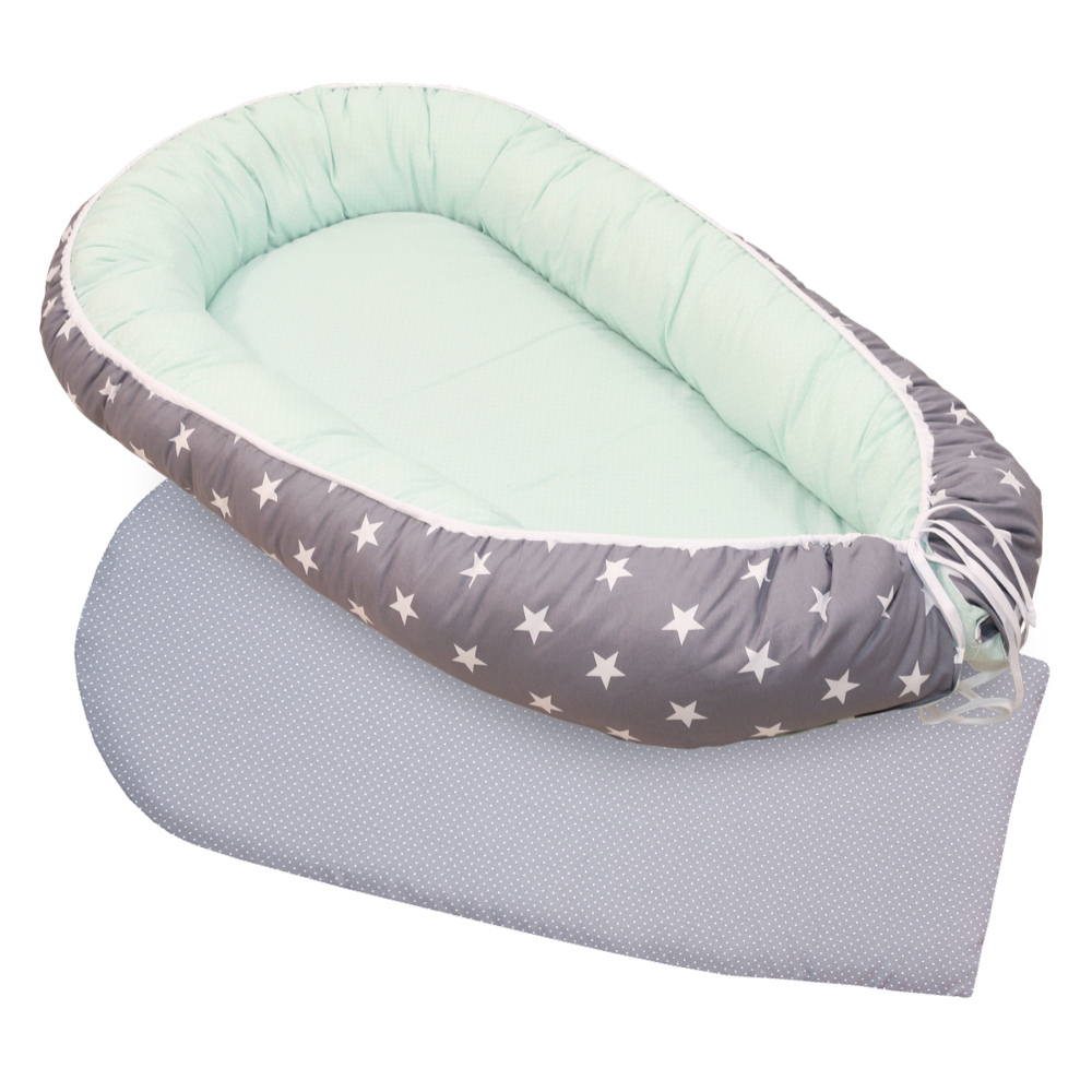 ULLENBOOM® Babynest mit Einlage im Set – Mint Grau – Baby Cocoon AuÃenstoff aus 100% Baumwolle, Das Kuschelnest ist waschbar bis 40 °C