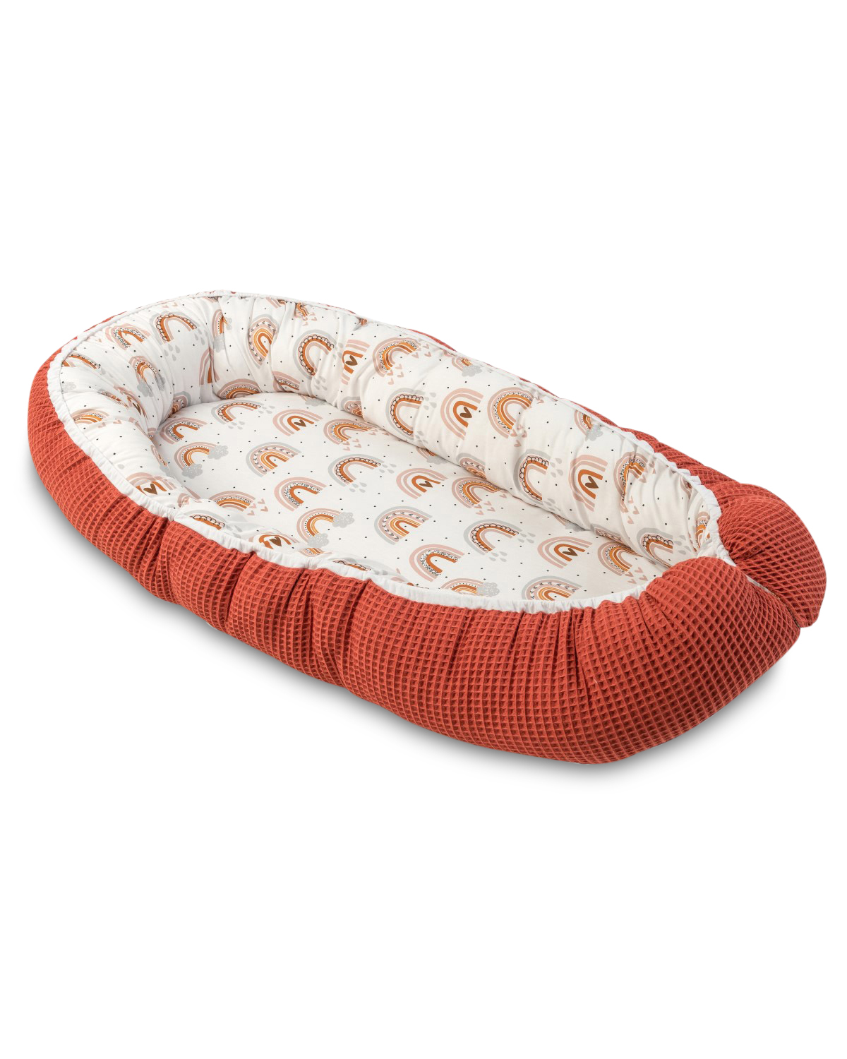 ULLENBOOM® Babynest und Kuschelnest Rost Regenbogen – 55×95 cm – Weicher Außenstoff 100% Baumwolle – Babynestchen, Cocoon, Kuschelbett für Babys