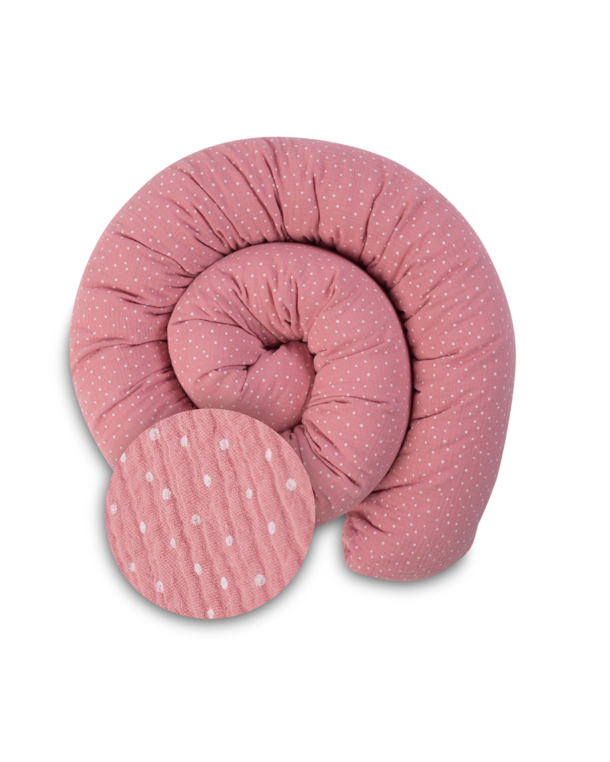 ULLENBOOM® Bettschlange Baby, Nestchenschlange in Rosa, Musselin – Außenstoff 100% Baumwolle – Bettrolle Babybett