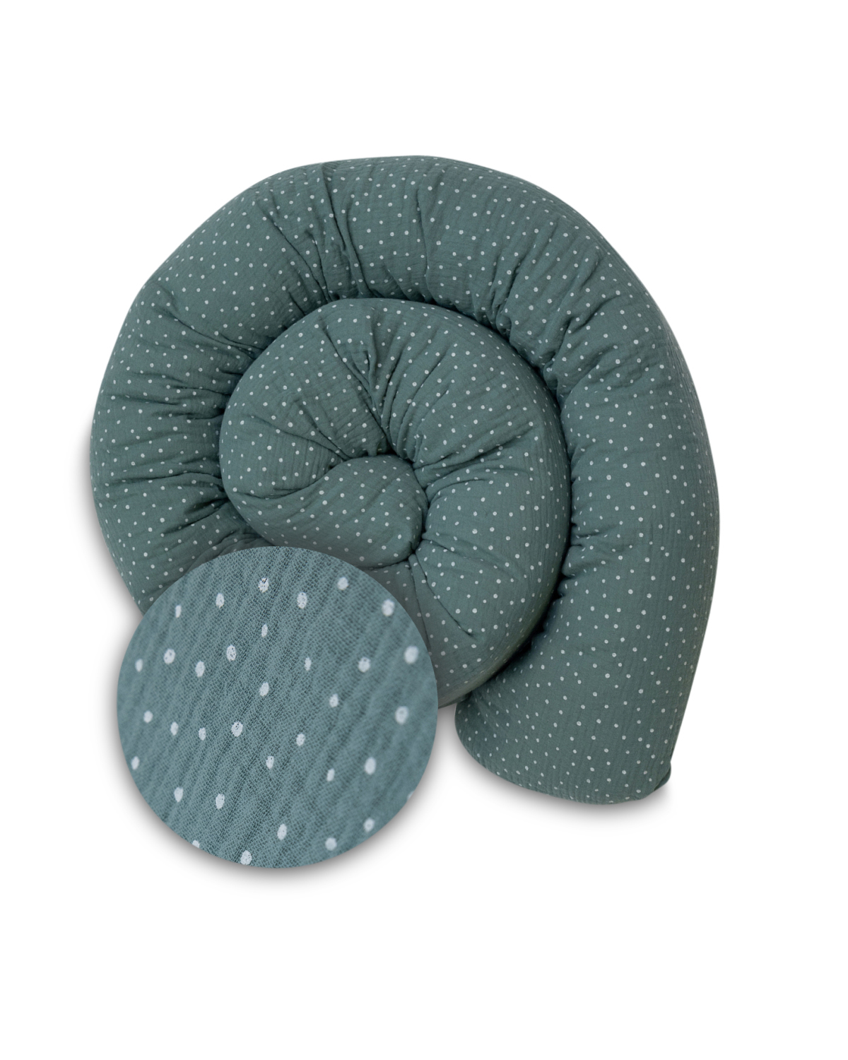 ULLENBOOM® Bettschlange Baby, Nestchenschlange in Salbeigrün, Musselin – Außenstoff 100% Baumwolle – Bettrolle Babybett