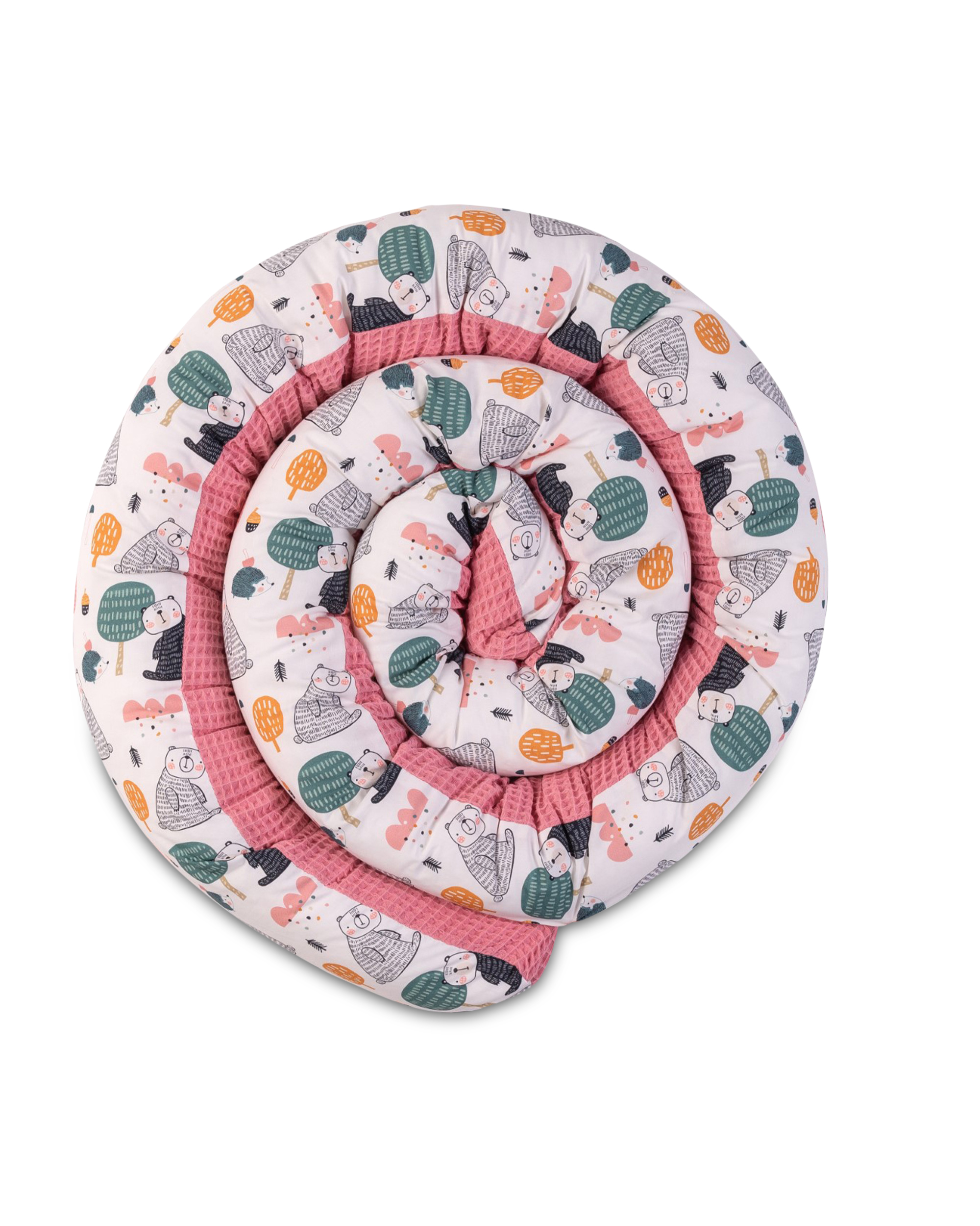 ULLENBOOM® Bettschlange, Nestchenschlange – 2m und 3m verfügbar – Waffelpiqué, Altrosa Bären – Außenstoff 100% Baumwolle, Weiche Füllung – Bettrolle Babybett