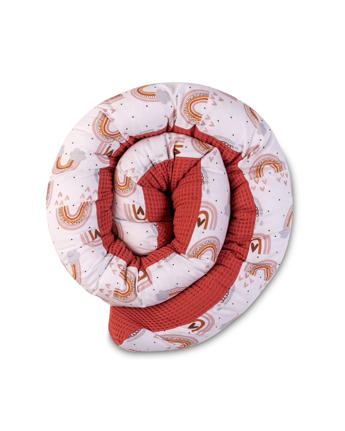 ULLENBOOM® Bettschlange, Nestchenschlange – 2m und 3m verfügbar – Waffelpiqué, Rost Regenbogen – AuÃenstoff 100% Baumwolle, Weiche Füllung – Bettrolle Babybett