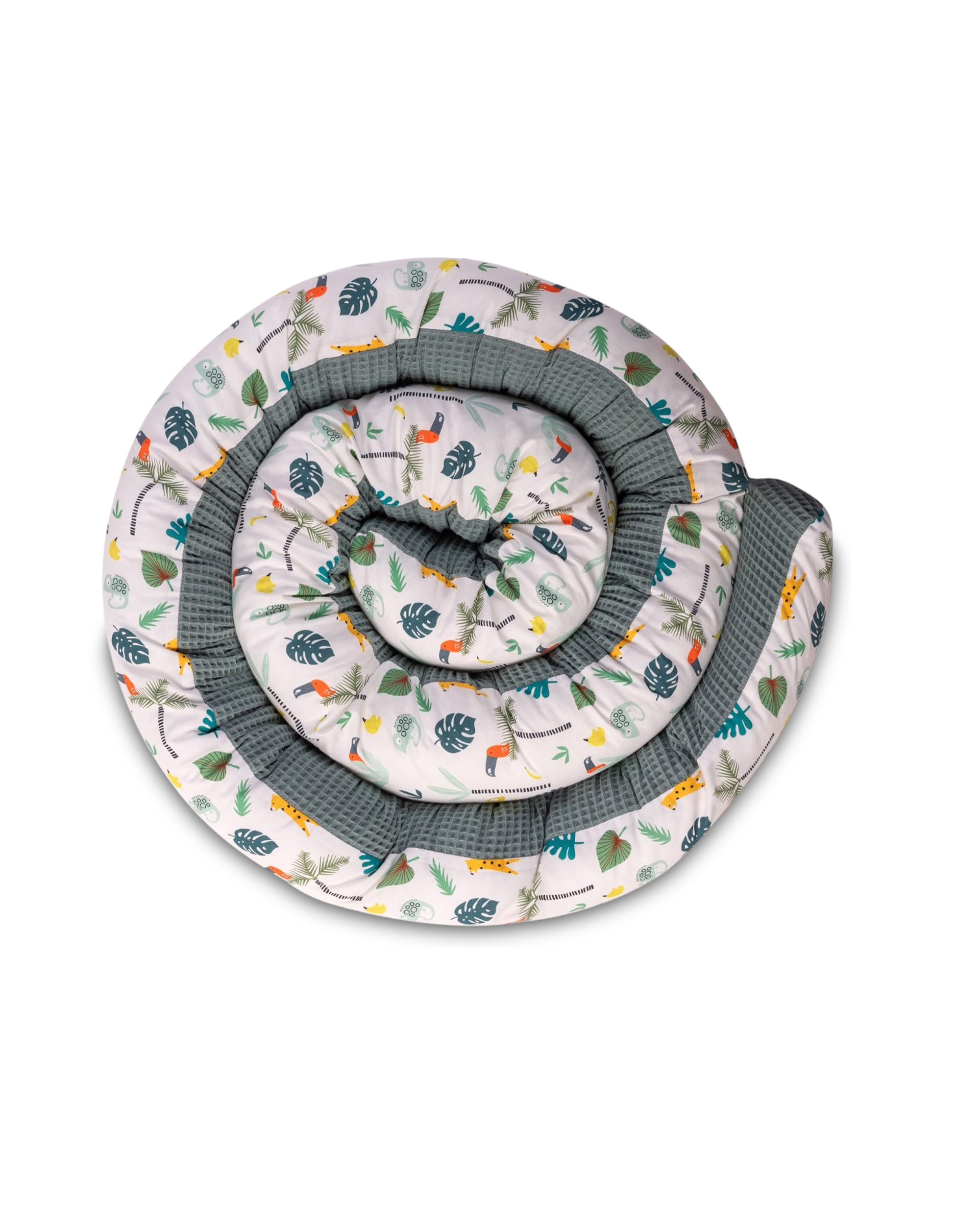 ULLENBOOM® Bettschlange, Nestchenschlange – 2m und 3m verfügbar – Waffelpiqué, Salbeigrün Regenwald – AuÃenstoff 100% Baumwolle, Weiche Füllung – Bettrolle Babybett