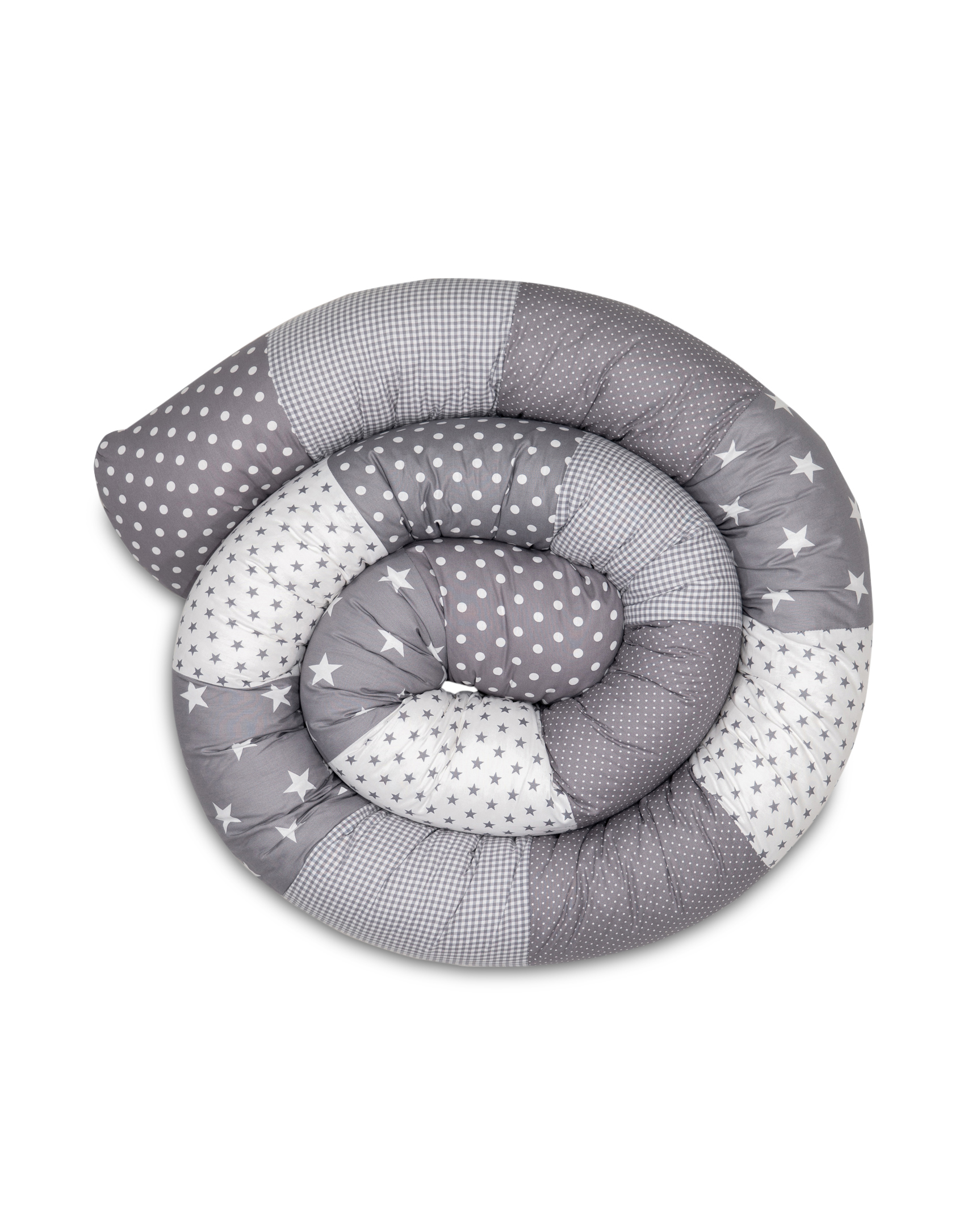 ULLENBOOM® Bettschlange, Nestchenschlange – Viele Größen – Patchwork, Graue Sterne – Außenstoff 100% Baumwolle, Weiche Füllung – Bettrolle Babybett
