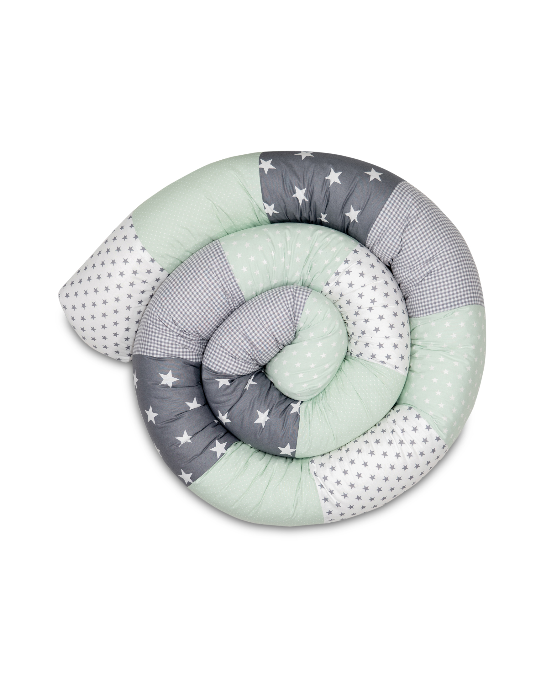 ULLENBOOM® Bettschlange, Nestchenschlange – Viele Größen – Patchwork, Mint Grau – Außenstoff 100% Baumwolle, Weiche Füllung – Bettrolle Babybett