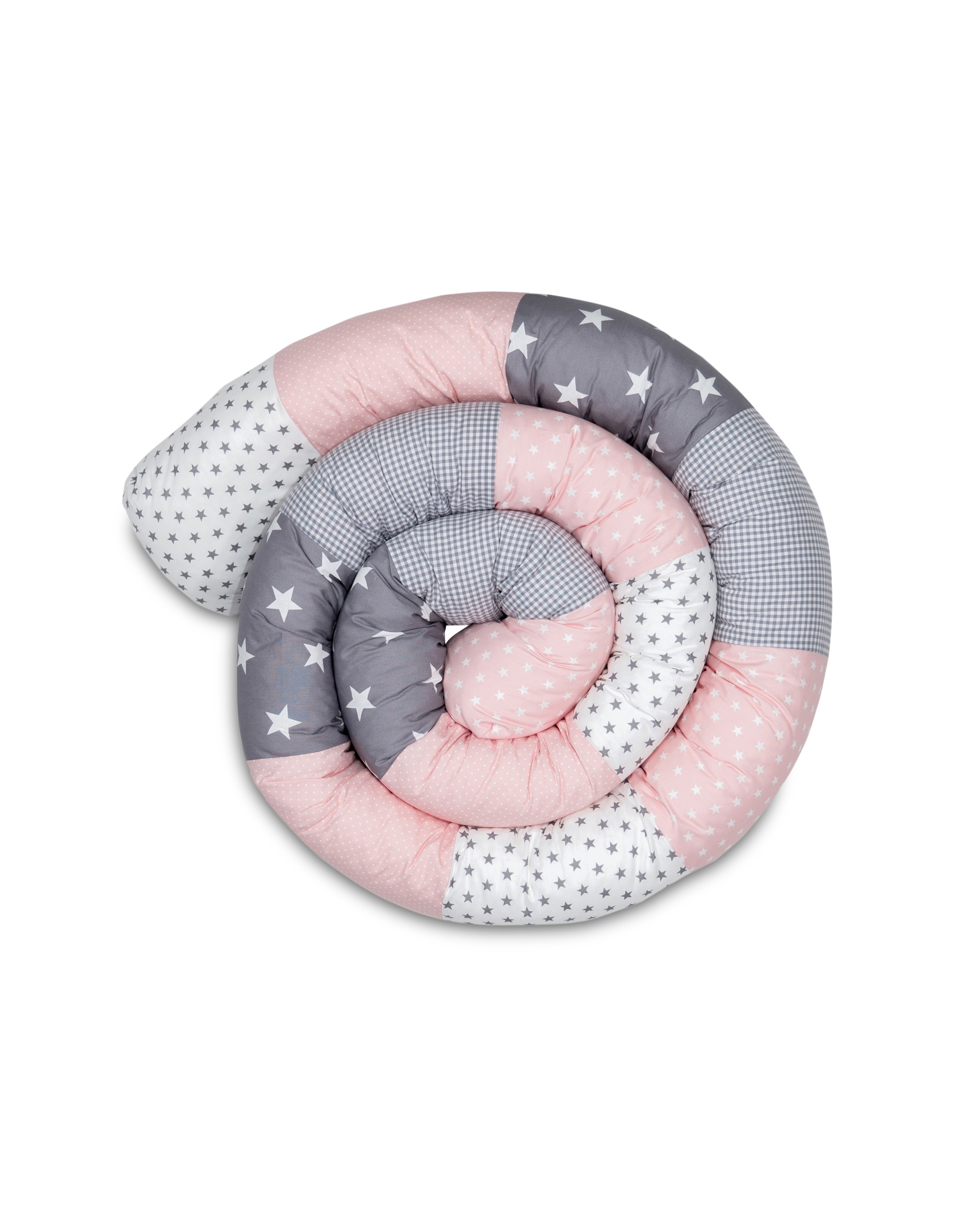 ULLENBOOM® Bettschlange, Nestchenschlange – Viele Größen – Patchwork, Rosa Grau – Außenstoff 100% Baumwolle, Weiche Füllung – Bettrolle Babybett