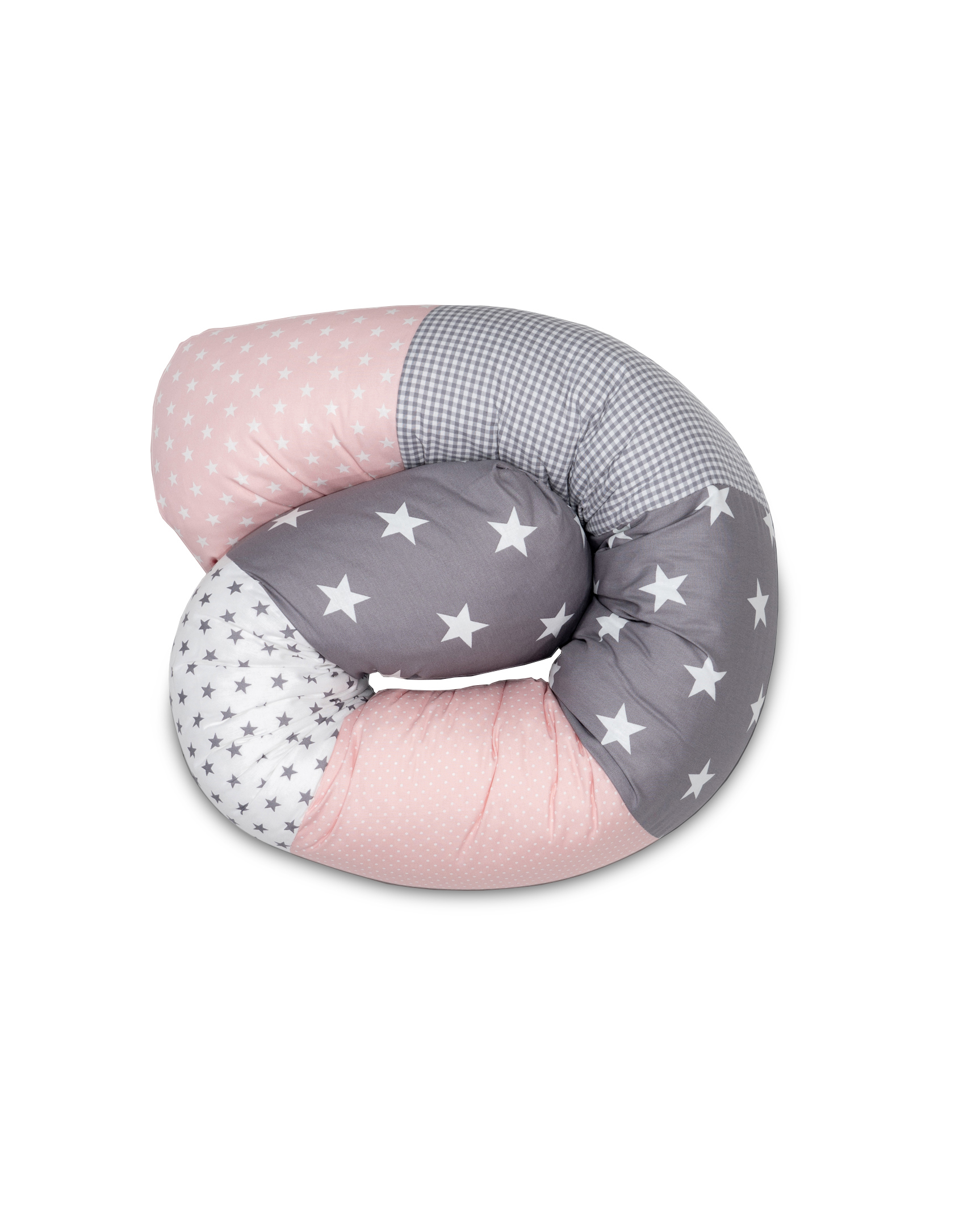 ULLENBOOM® Bettschlange, Nestchenschlange – Viele Größen – Patchwork, Rosa Grau – Außenstoff 100% Baumwolle, Weiche Füllung – Bettrolle Babybett