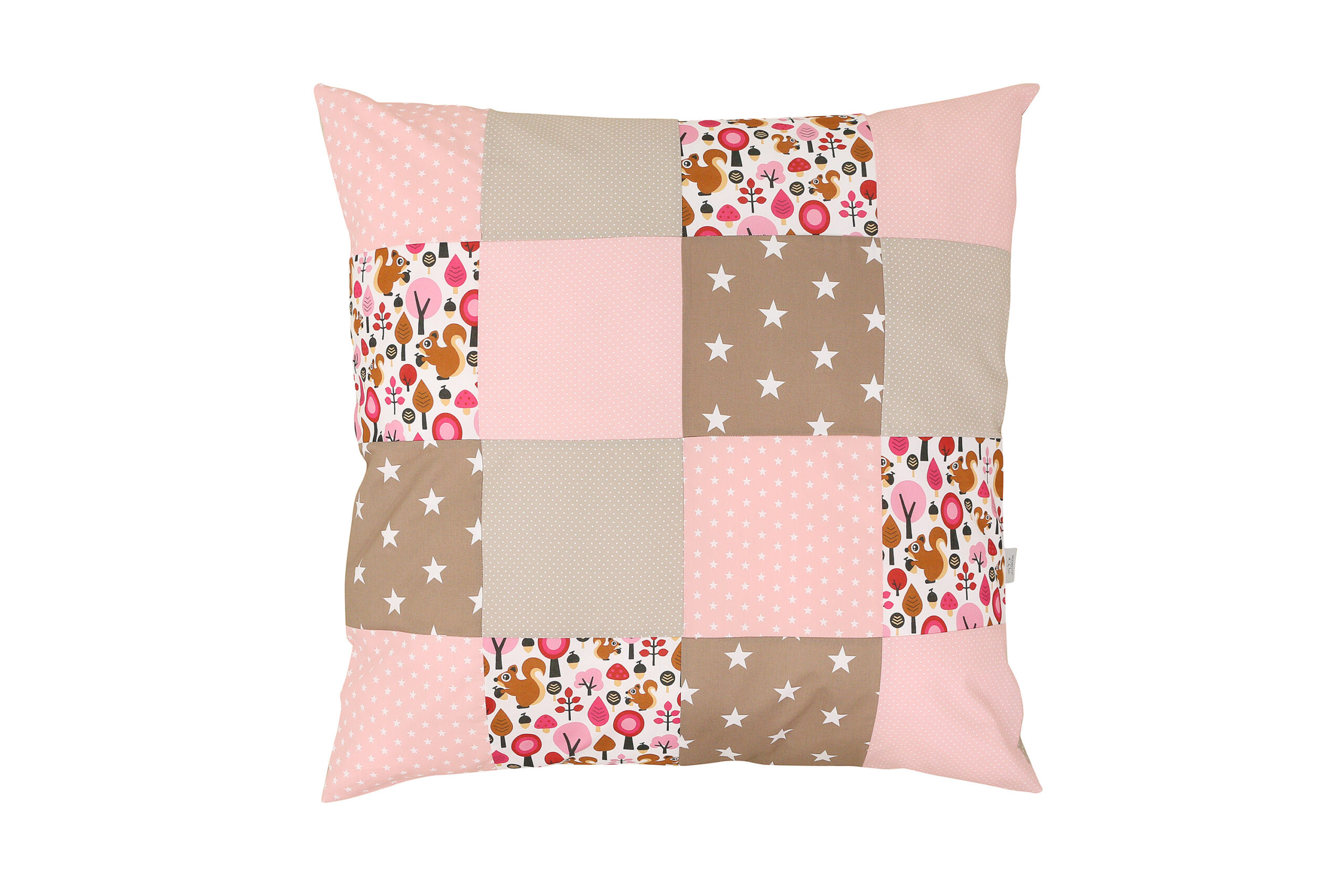ULLENBOOM® Bezug 80×80 cm für Bettdecke oder Kissen – Patchwork, Sand Eichhörnchen (Rosa) – 100% Baumwolle – Kopfkissenbezug, Kissenhülle für Babys