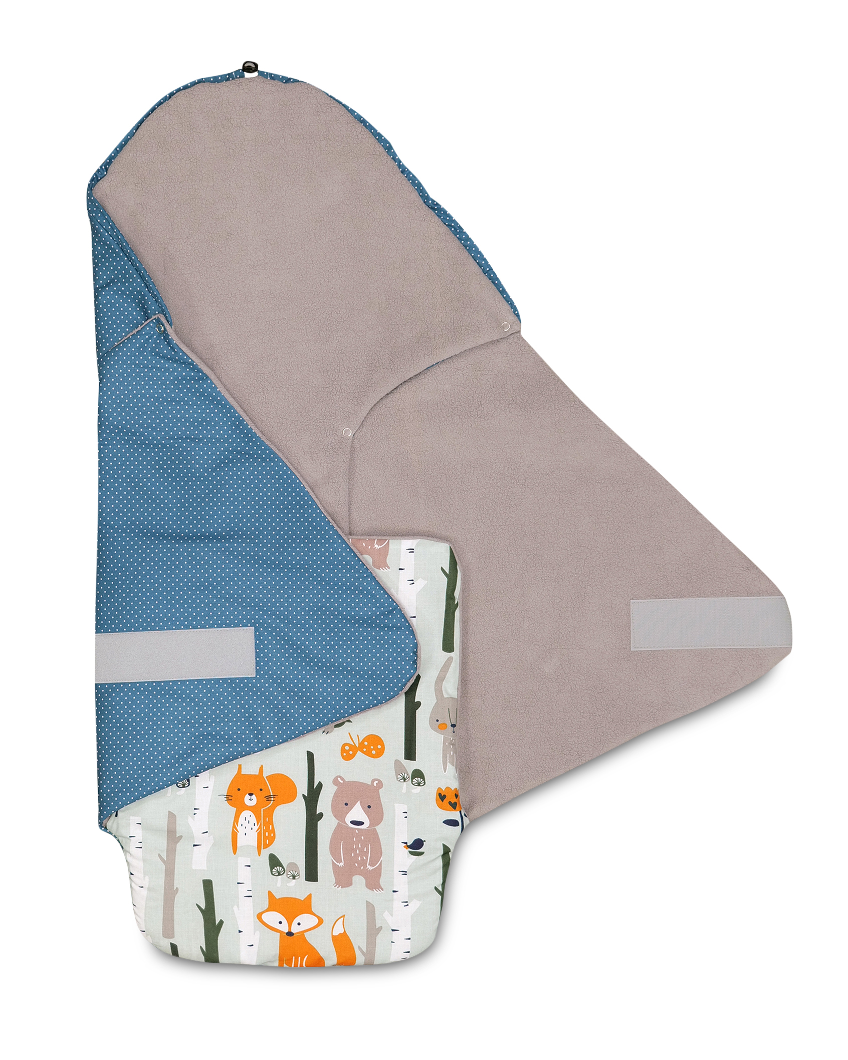 ULLENBOOM® Einschlagdecke – Waldtiere Petrol – Patchwork-Design – Für Babyschalen, Kindersitze, Babywannen – Geeignet für 3- und 5-Punkt-Gurte