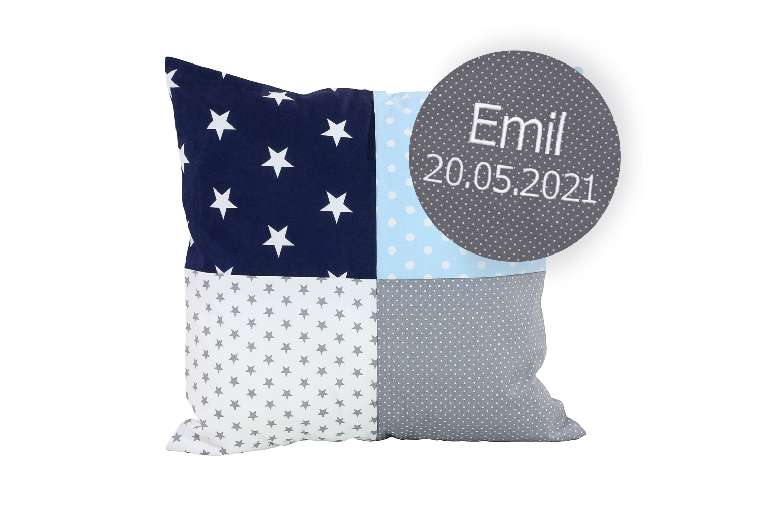 ULLENBOOM® Kissenbezug 40×40 cm personalisiert – Blau Hellblau Grau – Weicher Stoff 100% Baumwolle – Kopfkissenbezug, Kissenhülle für Babys