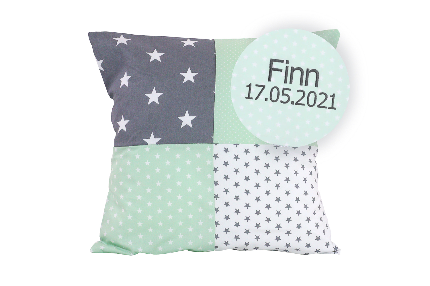 ULLENBOOM® Kissenbezug 40×40 cm personalisiert – Mint Grau – Weicher Stoff 100% Baumwolle – Kopfkissenbezug, Kissenhülle für Babys