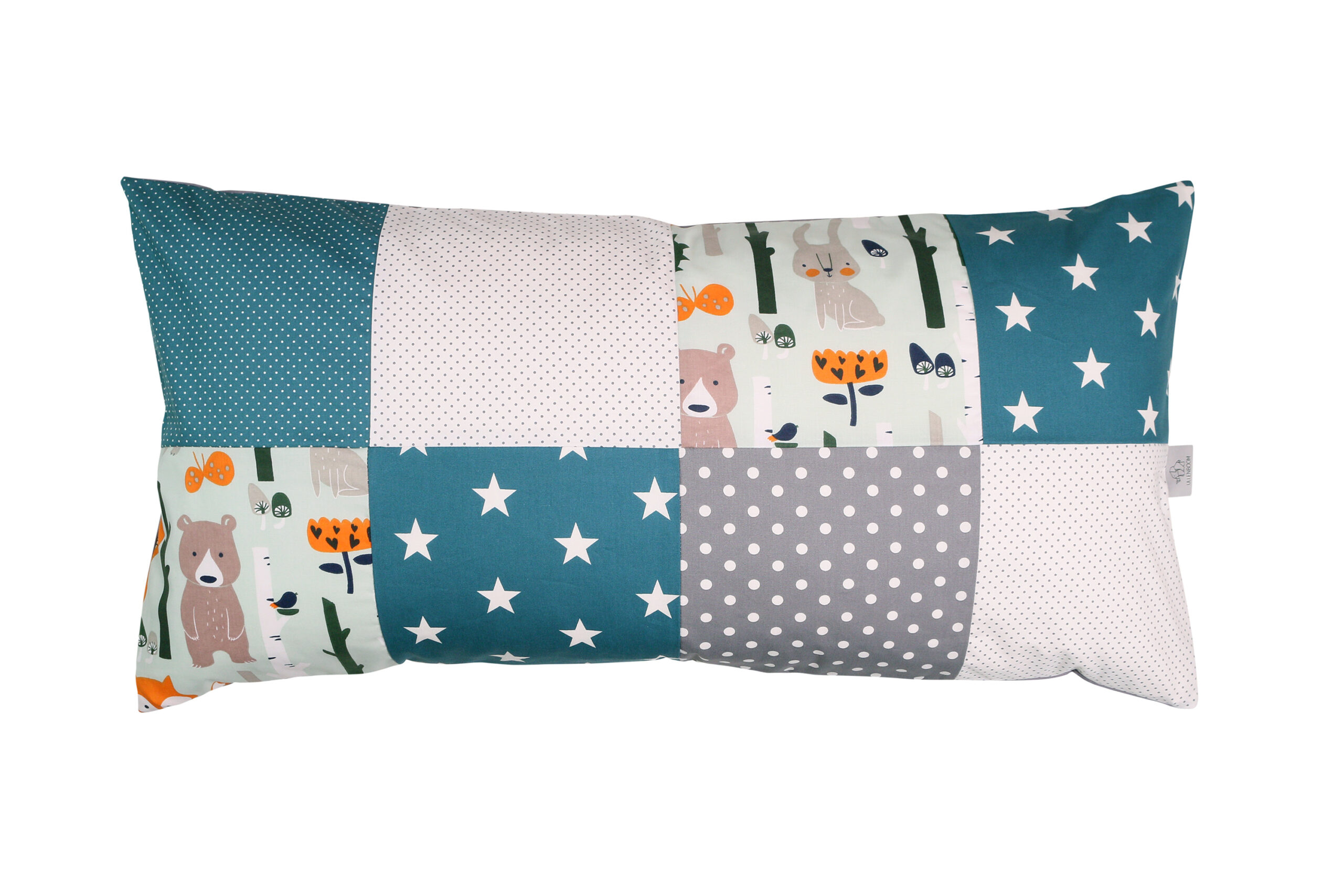 ULLENBOOM® Kissenbezug 40×80 cm – Patchwork, Waldtiere Petrol – Weicher Stoff 100% Baumwolle – Kopfkissenbezug, Kissenhülle für Babys
