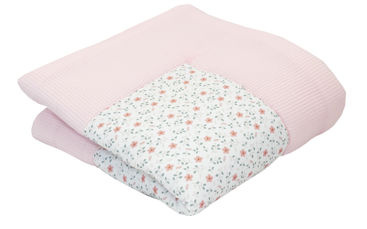 ULLENBOOM® Krabbeldecke – Patchwork, FLORAL ROSA – verschiedene Größen – Außenstoff 100% Baumwolle – Laufgittereinlage, Babydecke, Spieldecke