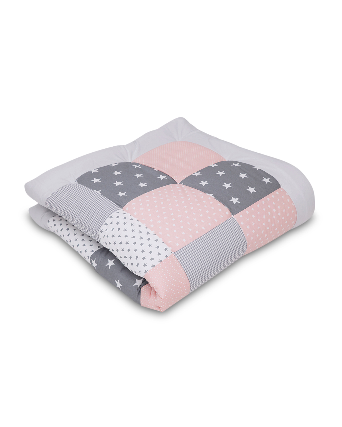 ULLENBOOM® Krabbeldecke – Patchwork, Rosa Grau – verschiedene Größen – Außenstoff 100% Baumwolle – Laufgittereinlage, Babydecke, Spieldecke