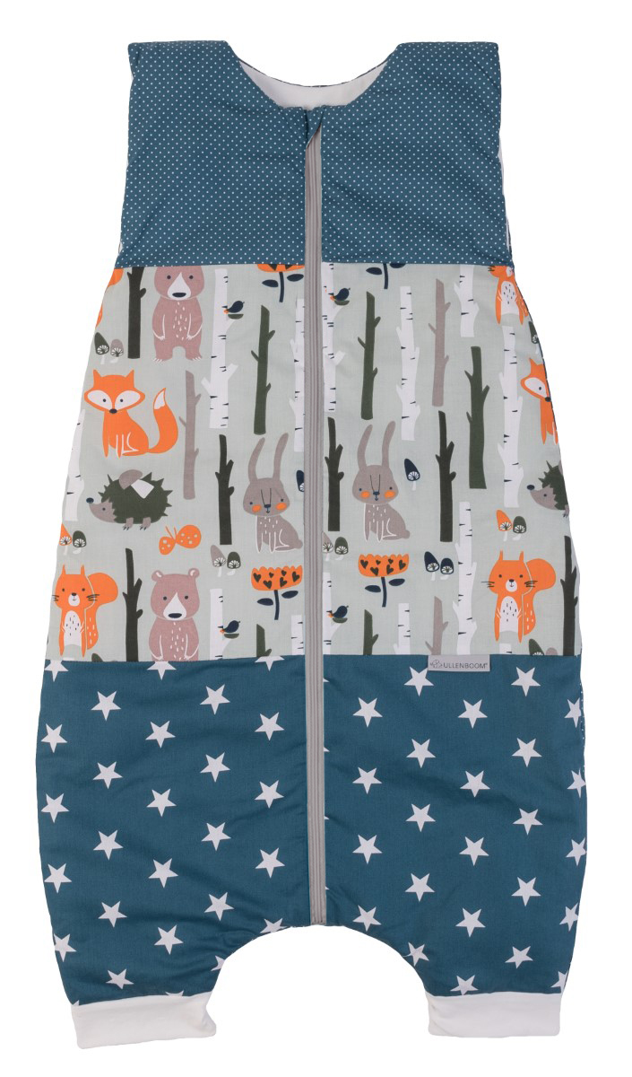 ULLENBOOM® Sommerschlafsack mit Beinen für Babys und Kinder – Waldtiere Petrol – Als Schlafanzug für Kinder und Babys nutzbar – Größen 70 cm, 90 cm und 110 cm verfügbar