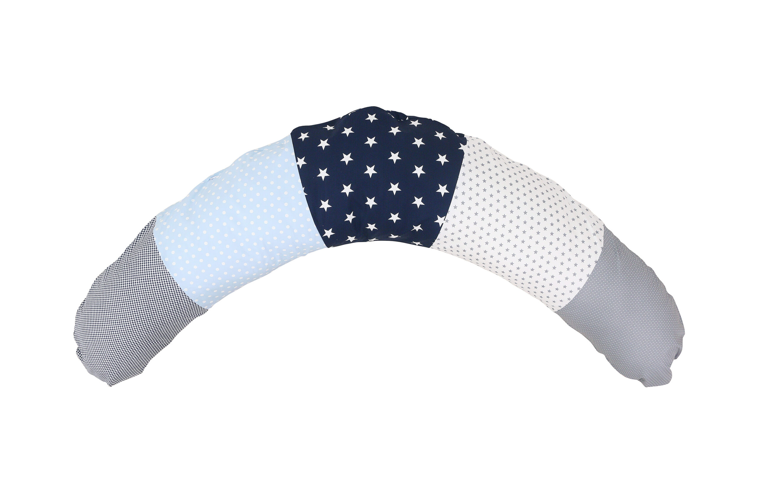 ULLENBOOM® Stillkissen 190×38 cm, Bezug + Inlett – Patchwork, Blau Hellblau Grau – Füllung: Mikrofaserbällchen – Seitenschläferkissen, Ãko & Fair