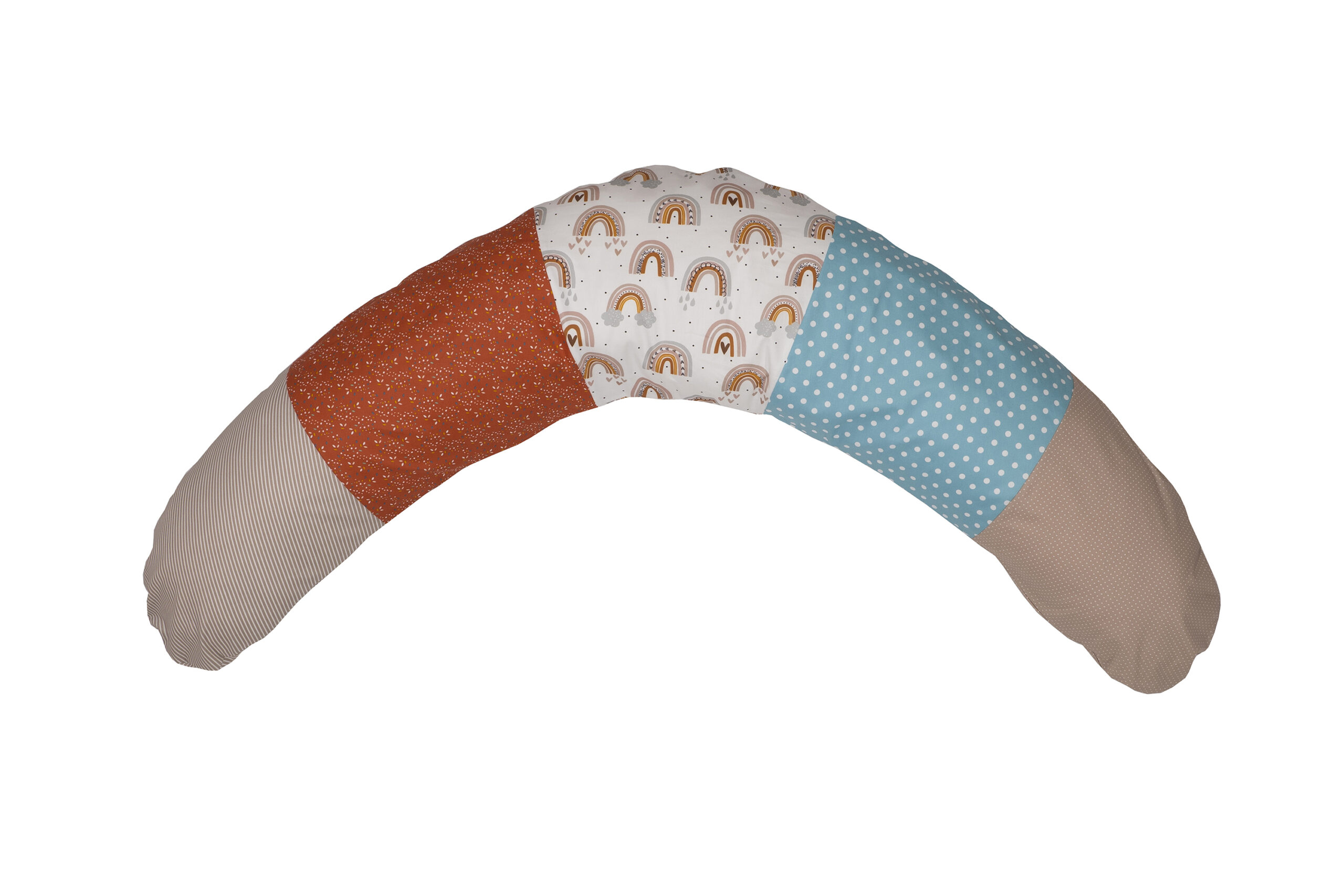 ULLENBOOM® Stillkissen 190×38 cm, Bezug + Inlett – Patchwork, Regenbogen – Füllung: Mikrofaserbällchen – Seitenschläferkissen, Ãko & Fair