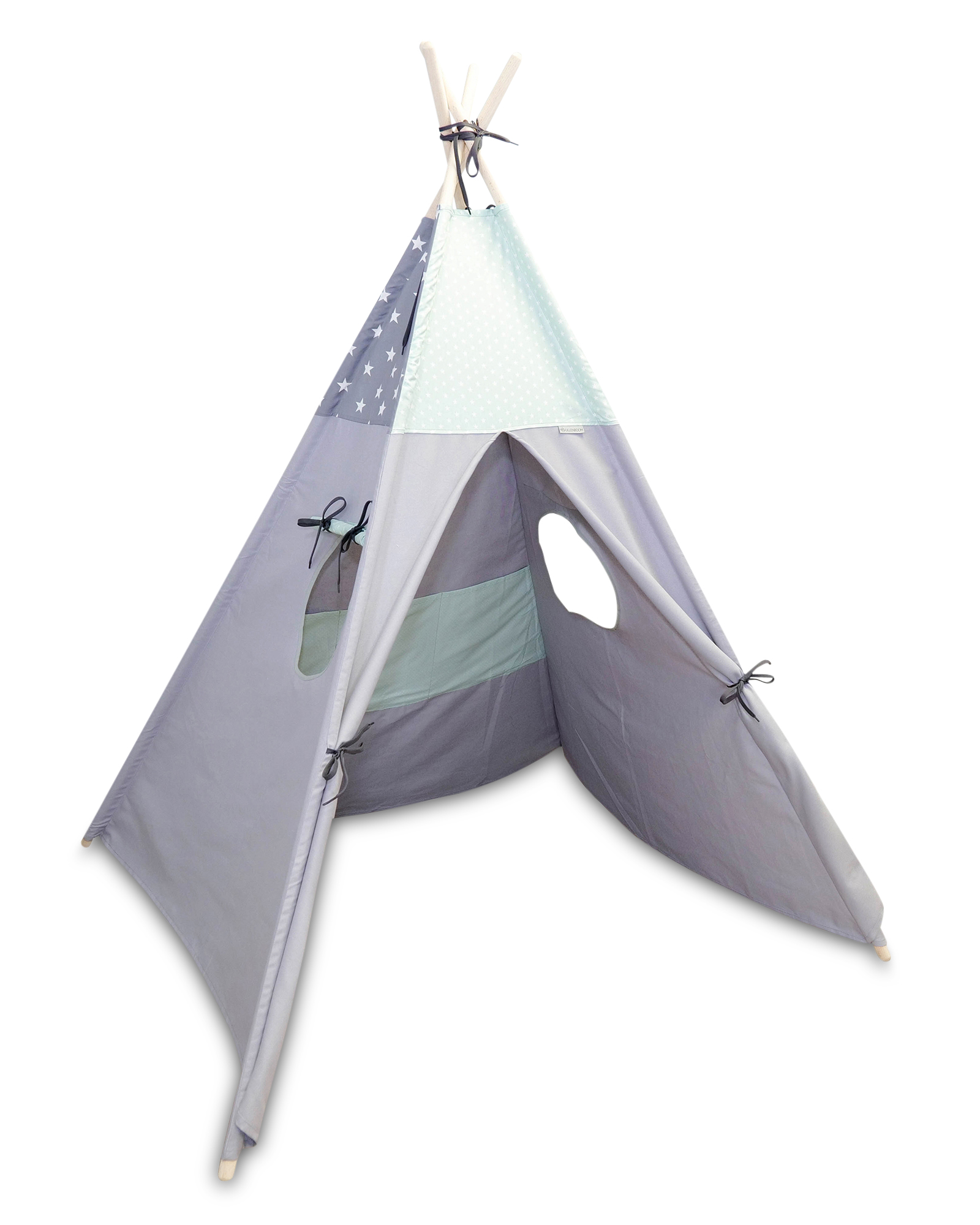 ULLENBOOM® Tipi Zelt für Kinder – Mint Grau – Weicher Bezug aus 100% Baumwolle – Spielzelt für Kinderzimmer, auch für outdoor geeignet