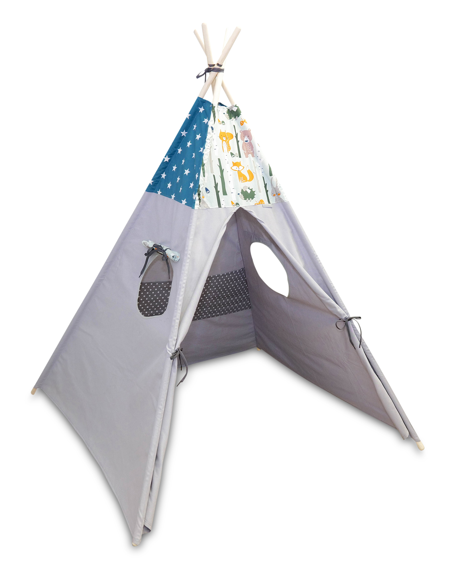 ULLENBOOM® Tipi Zelt für Kinder – Waldtiere Petrol – Weicher Bezug aus 100% Baumwolle – Spielzelt für Kinderzimmer, auch für outdoor geeignet