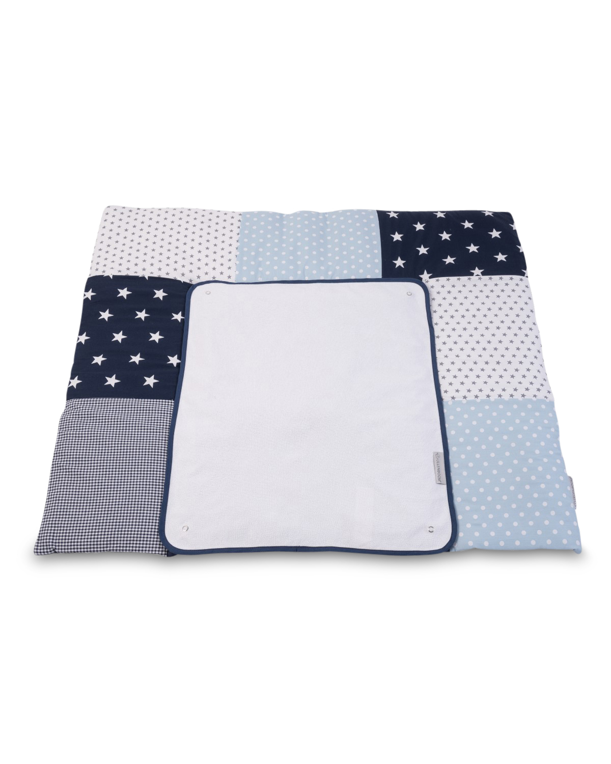 ULLENBOOM® Wickelauflage 75×85 mit Wechselmatte aus Stoff – Blau Hellblau Grau – Waschbar – AuÃenstoff aus 100% Baumwolle – Wickelunterlage Wickeltisch – Auch für Unterwegs