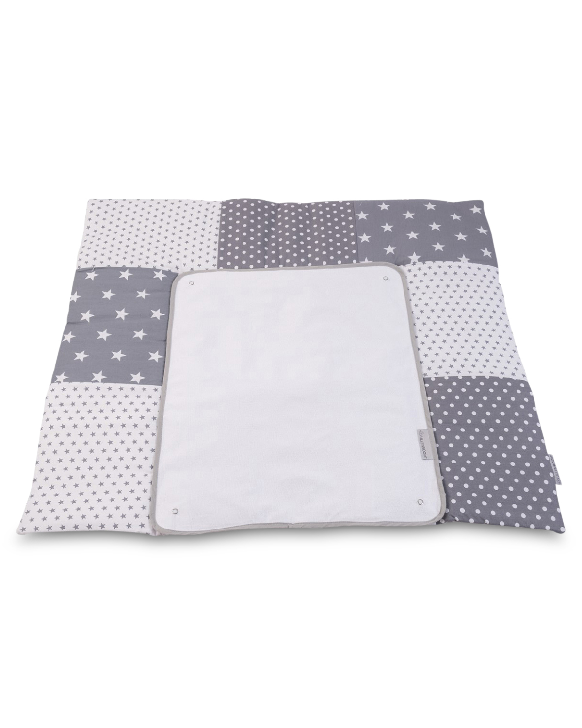 ULLENBOOM® Wickelauflage 75×85 mit Wechselmatte aus Stoff – Graue Sterne – Waschbar – AuÃenstoff aus 100% Baumwolle – Wickelunterlage Wickeltisch – Auch für Unterwegs