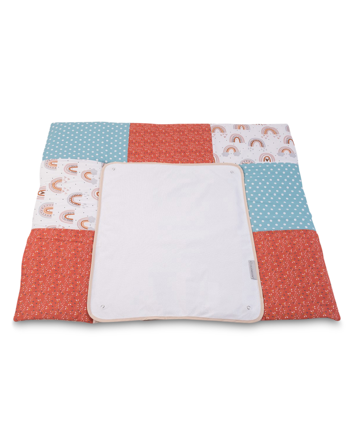 ULLENBOOM® Wickelauflage 75×85 mit Wechselmatte aus Stoff – Regenbogen – Waschbar – AuÃenstoff aus 100% Baumwolle – Wickelunterlage Wickeltisch – Auch für Unterwegs