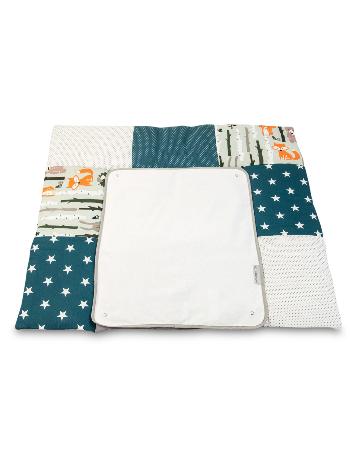 ULLENBOOM® Wickelauflage 75×85 mit Wechselmatte aus Stoff – Waldtiere Petrol – Waschbar – AuÃenstoff aus 100% Baumwolle – Wickelunterlage Wickeltisch – Auch für Unterwegs