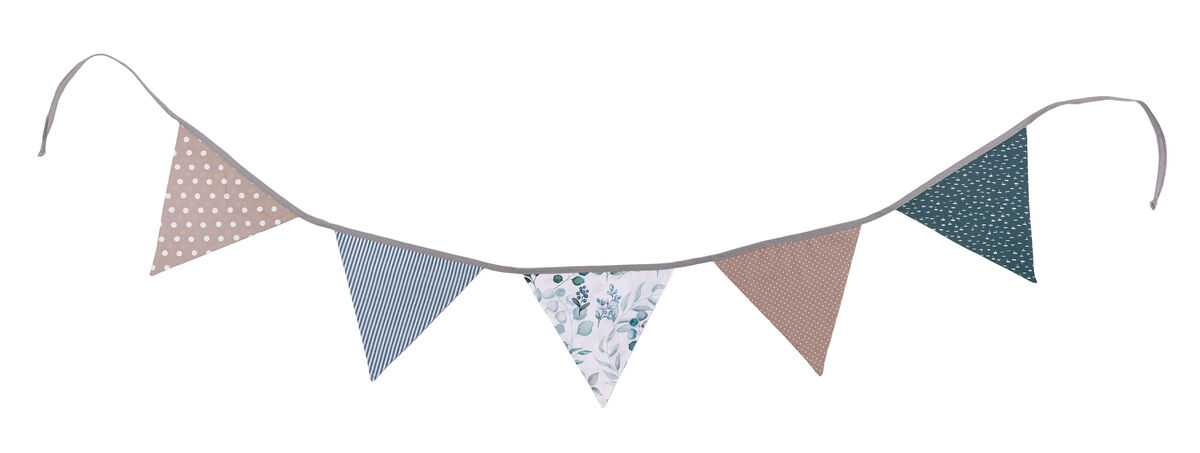 ULLENBOOM® Wimpelkette 190cm – Patchwork, Eukalyptus-Design – 100% Baumwolle – Stoffgirlande, Wimpelgirlande für Kinderzimmer – 1,90m, 5 Wimpel