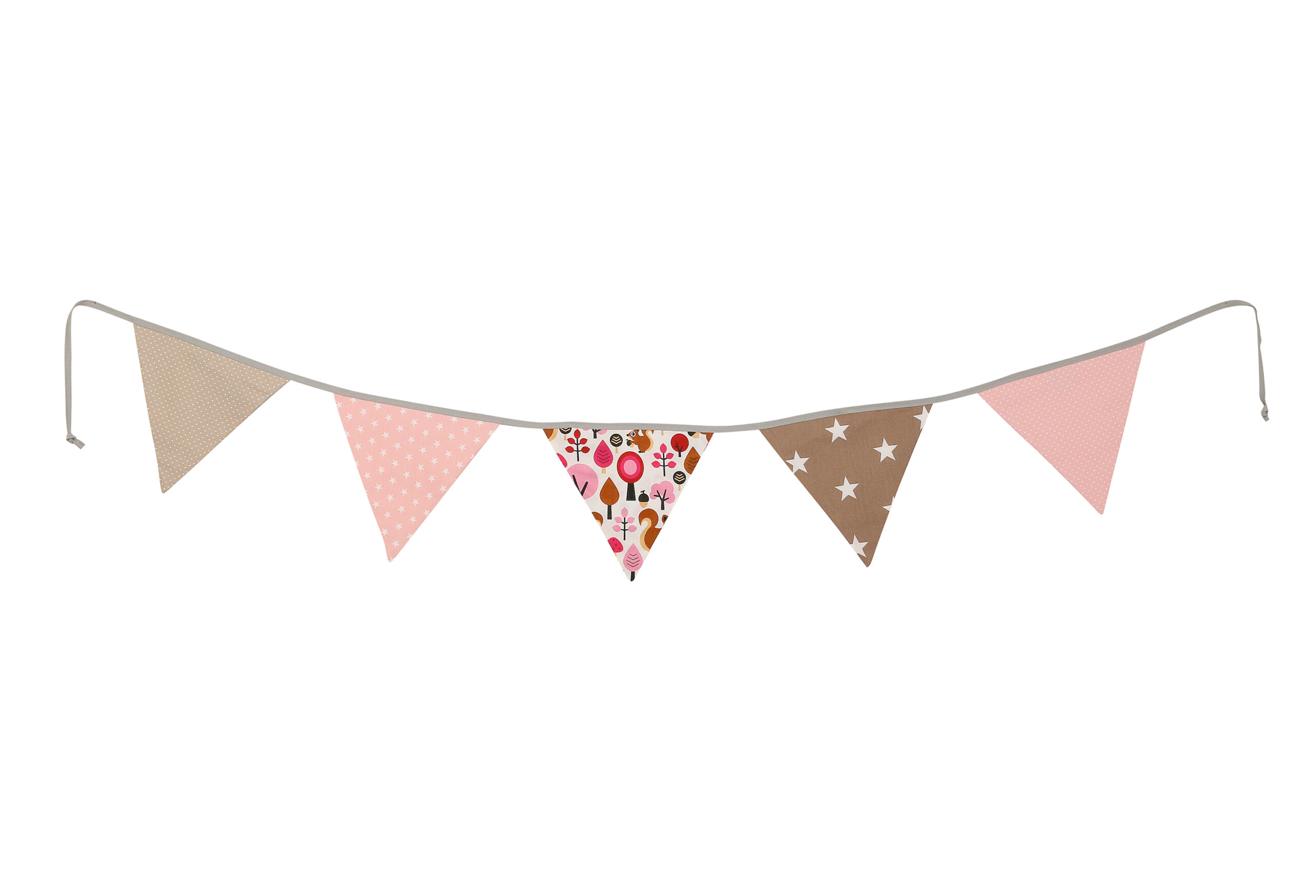 ULLENBOOM® Wimpelkette 190cm – Patchwork, Sand Eichhörnchen (Rosa) – 100% Baumwolle – Stoffgirlande, Wimpelgirlande für Kinderzimmer – 1,90m, 5 Wimpel