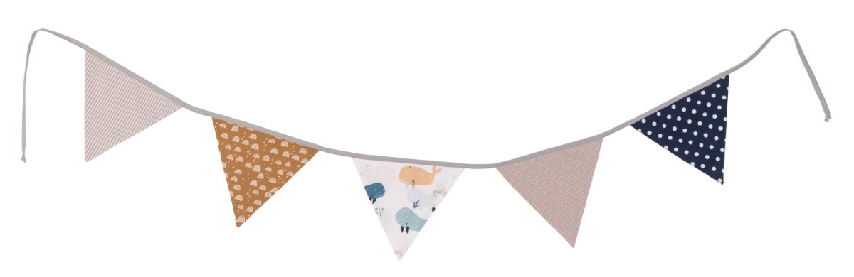 ULLENBOOM® Wimpelkette 190cm – Patchwork, WALE-Design – 100% Baumwolle – Stoffgirlande, Wimpelgirlande für Kinderzimmer – 1,90m, 5 Wimpel