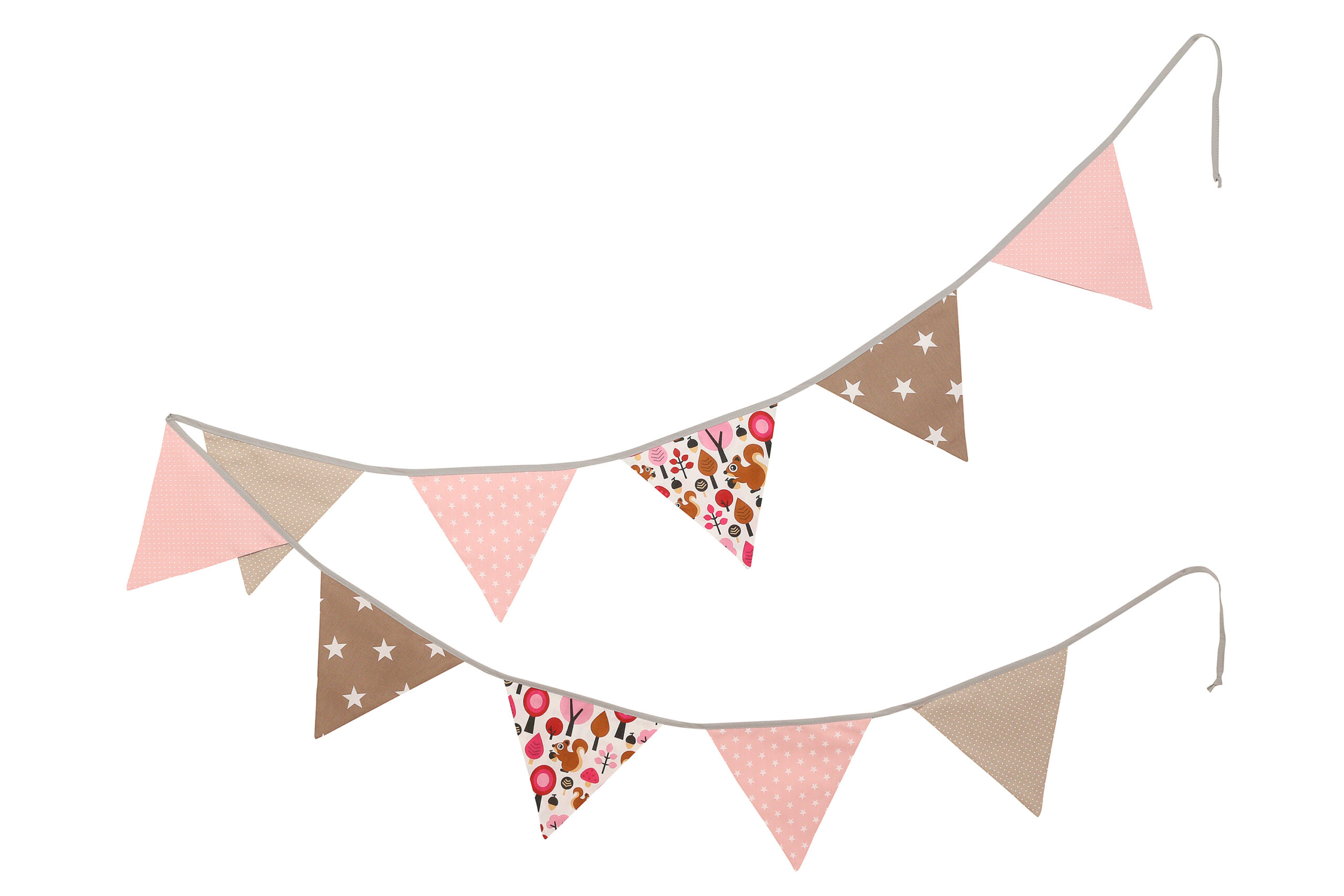 ULLENBOOM® Wimpelkette 325cm – Patchwork, Sand Eichhörnchen (Rosa) – 100% Baumwolle – Stoffgirlande, Wimpelgirlande Kinderzimmer – 3,25m, 10 Wimpel