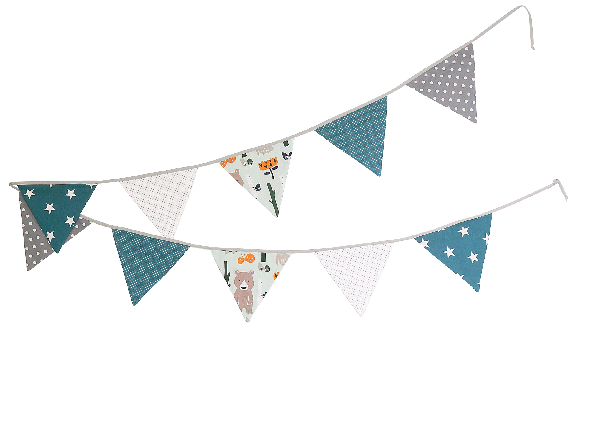 ULLENBOOM® Wimpelkette 325cm – Patchwork, Waldtiere Petrol – 100% Baumwolle – Stoffgirlande, Wimpelgirlande für Kinderzimmer – 3,25m, 10 Wimpel