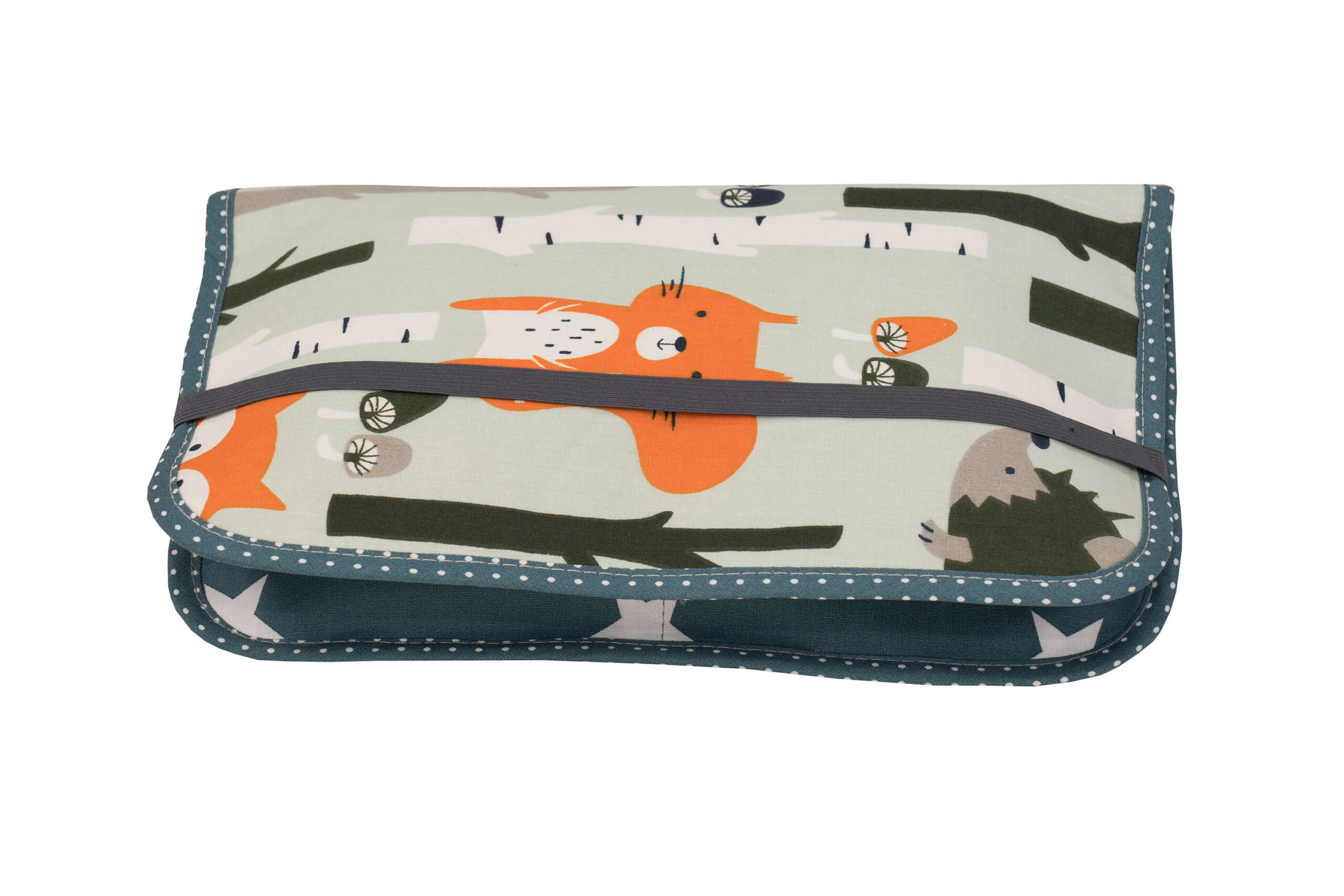 ULLENBOOM® Windeltasche – Waldtiere Petrol – 100% Baumwolle – Windeletui, Wickeltasche – Bis zu 3 Windeln, Feuchttücher & weitere Utensilien